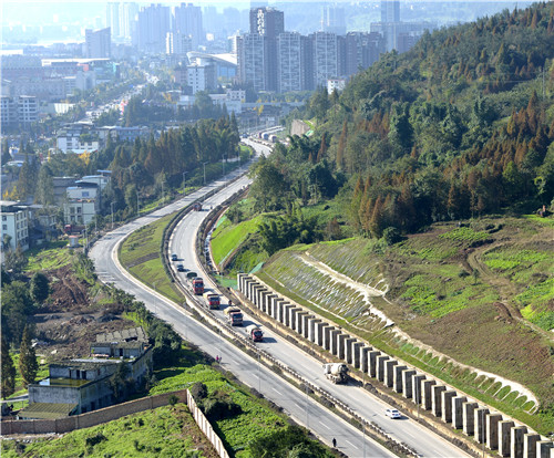 國道318線雅安至二郎山——雅安城區(qū)過境段(北外環(huán)線)項(xiàng)目是“4·20”蘆山強(qiáng)烈地震災(zāi)后重建民生項(xiàng)目。該工程起于姚橋新區(qū)雅洪公路交叉口,東連省道305線,沿光華山西側(cè)、金鳳山南側(cè)布置,穿青鼻山隧道,順碉堡山南側(cè)修建,止于康藏路西端,順接國道108線和318線,道路全長11.8公里,總投資11.96億元。道路設(shè)計(jì)為雙向4車道,設(shè)計(jì)時(shí)速60Km/h,,道路寬度從17米至49米不等。