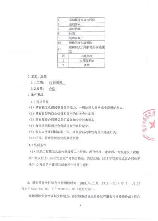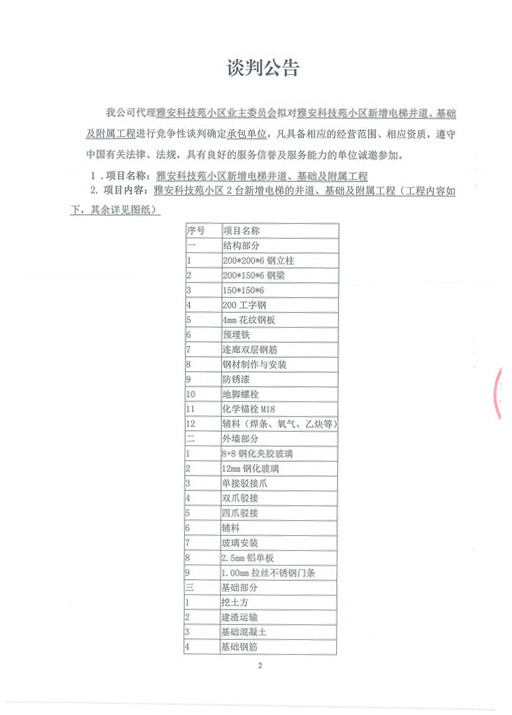 雅安科技苑小區(qū)新增電梯井道、基礎及附屬工程——競爭性談判