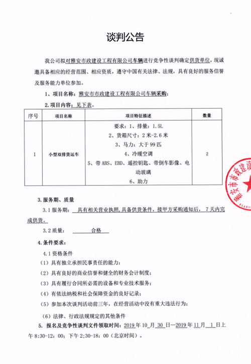 市政公司車輛采購(gòu)競(jìng)爭(zhēng)性談判公告