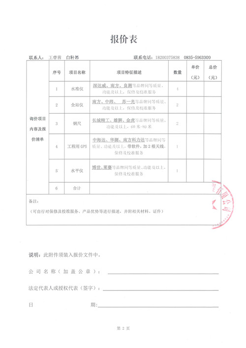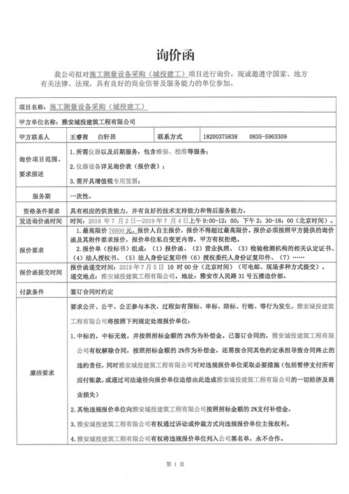 城投建工施工測(cè)量設(shè)備采購詢價(jià)函
