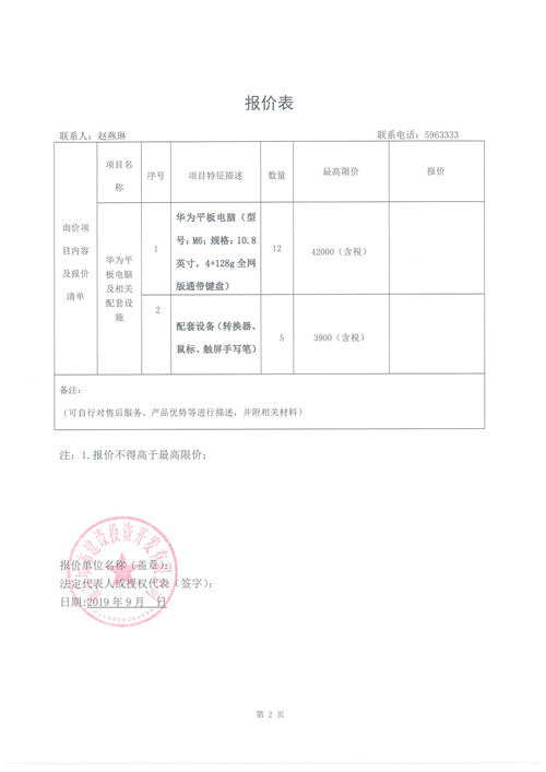 城投公司購(gòu)買華為平板電腦及相關(guān)配套設(shè)備詢價(jià)函
