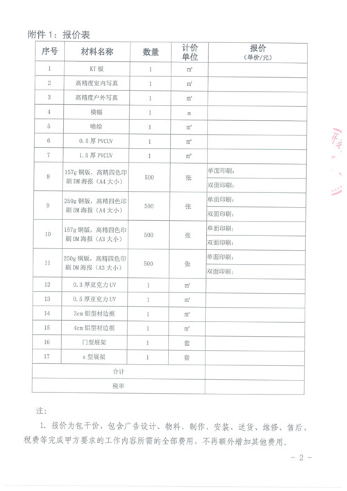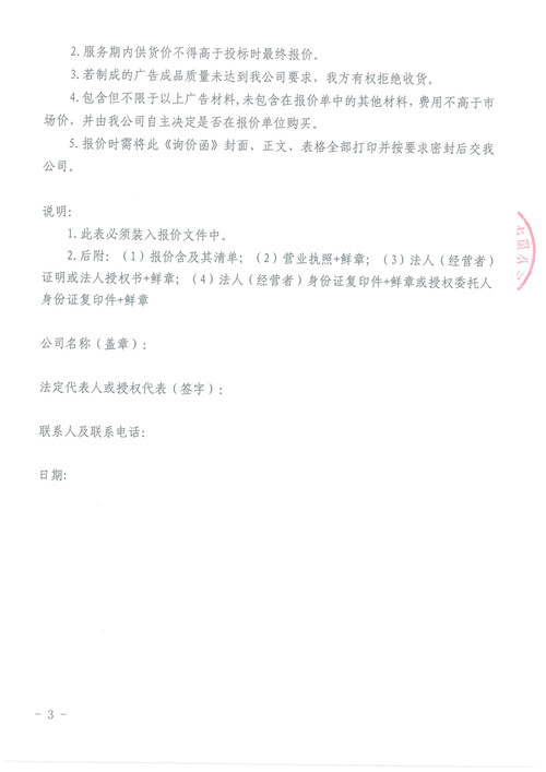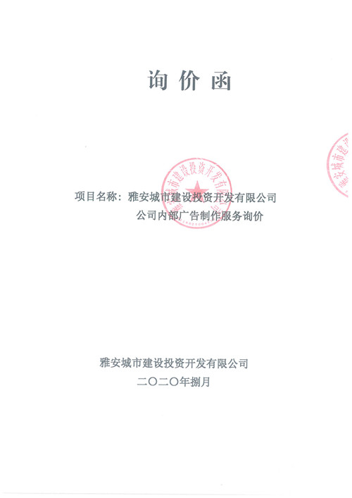 雅安城市建設(shè)投資開(kāi)發(fā)有限公司公司內(nèi)部廣告制作服務(wù)詢(xún)價(jià)函