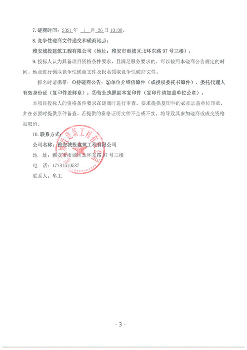 雅安城投建筑工程有限公司大興壹號(北苑)樣板房裝飾裝修競爭性磋商公告