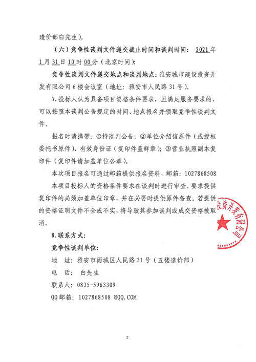 雅安城市建設(shè)投資開(kāi)發(fā)有限公司辦公樓食堂外包競(jìng)爭(zhēng)性談判公告