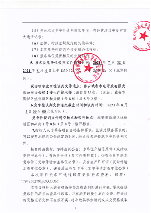 城利水電公司滎經(jīng)縣羅家灣電站大壩注冊登記工作相關資料編制競爭性談判公告