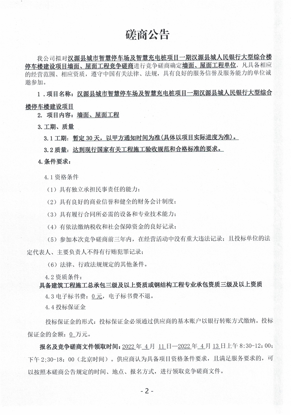 城投建工漢源縣城市智慧停車場(chǎng)及智慧充電樁項(xiàng)目一期漢源縣城人民銀行大型綜合樓停車樓建設(shè)項(xiàng)目墻面、屋面工程競(jìng)爭(zhēng)磋商公告