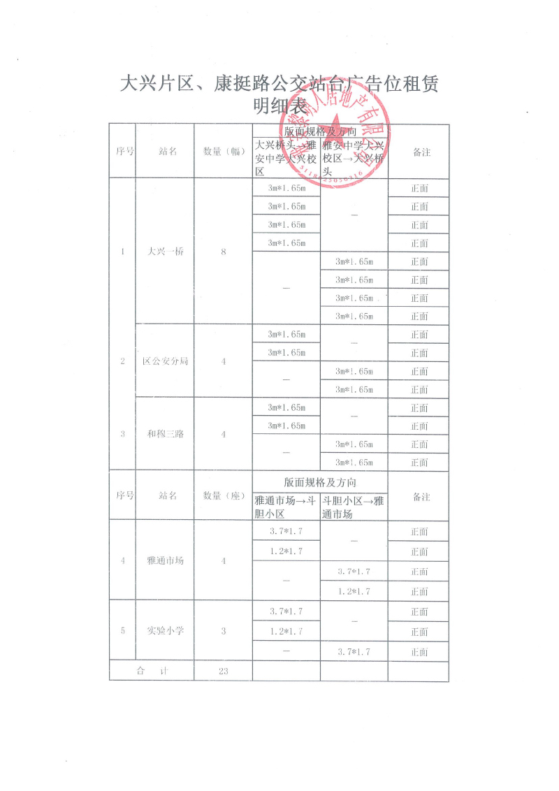 大興片區(qū)、康挺路23幅公交站臺廣告招租公告