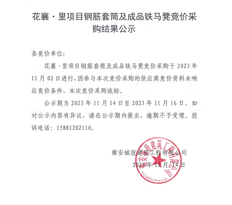 花襄·里鋼筋套筒及成品鐵馬凳競(jìng)價(jià)采購(gòu)結(jié)果公示
