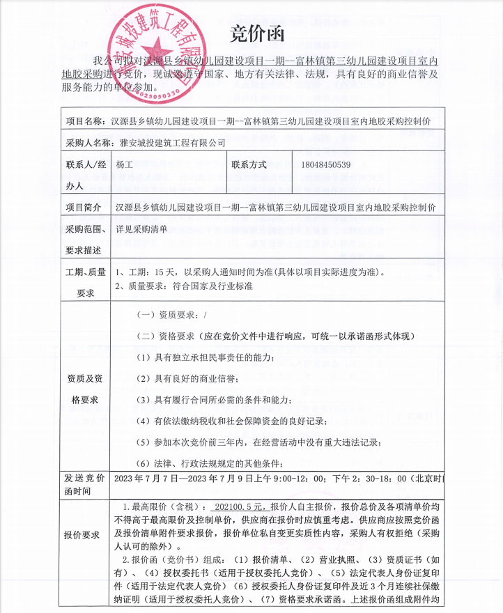 漢源縣鄉(xiāng)鎮(zhèn)幼兒園建設(shè)項目一期--富林鎮(zhèn)第三幼兒園建設(shè)項目室內(nèi)地膠采購競價公告