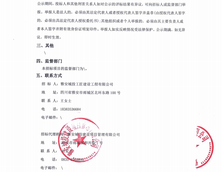 雅安市大興生態(tài)旅游建設(shè)項目欄桿采購項目(第二次)中標候選人公示