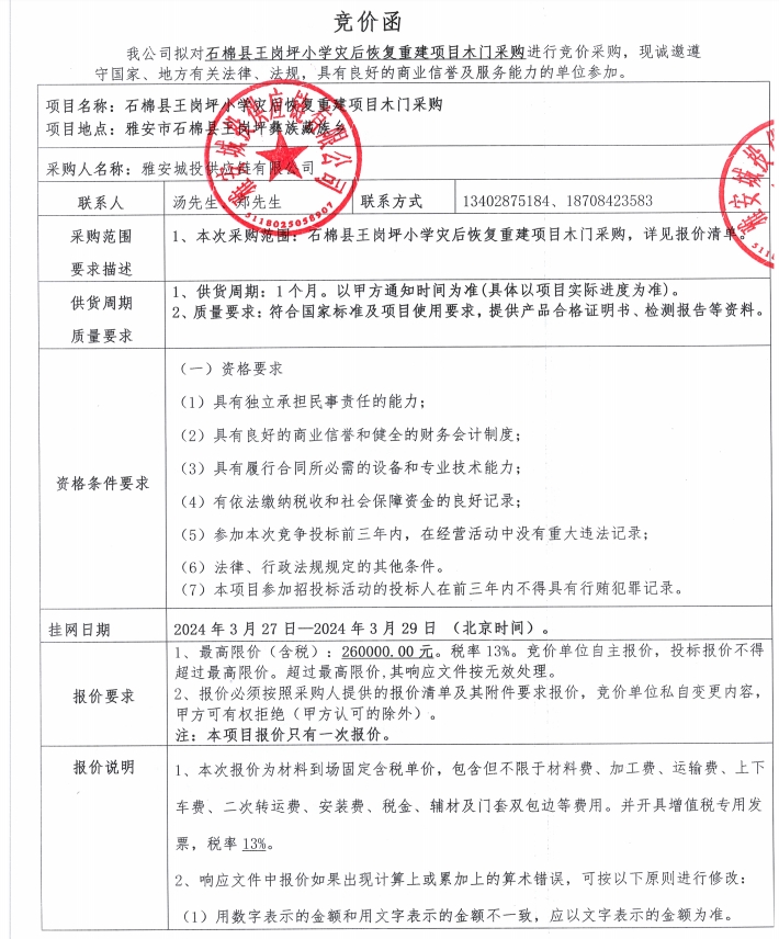 附件2:響應(yīng)文件格式-石棉縣王崗坪小學(xué)災(zāi)后恢復(fù)重建項(xiàng)目木門采購(gòu)