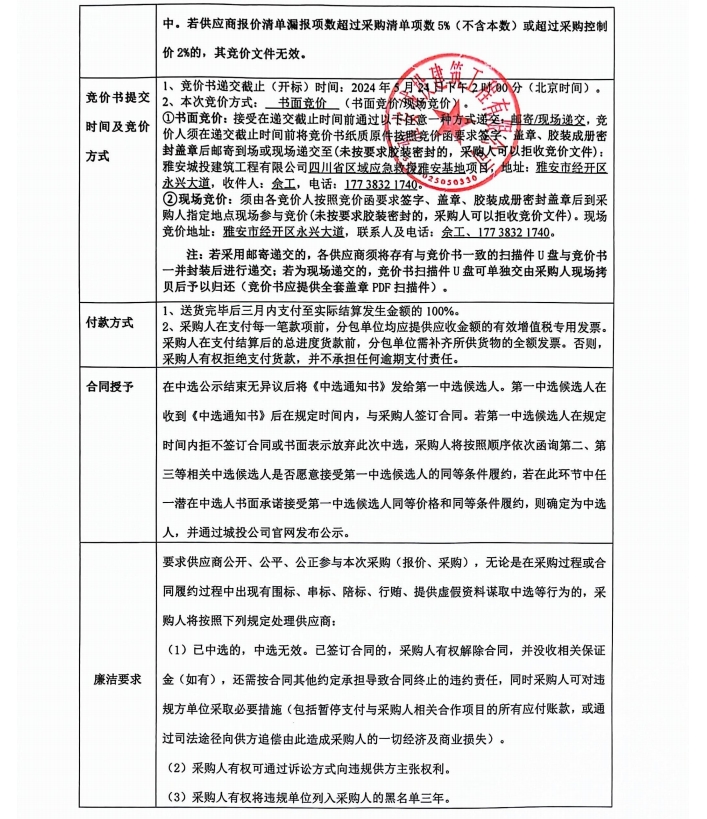 四川省區(qū)域應(yīng)急救援雅安基地項目模擬隧道材料競價公告