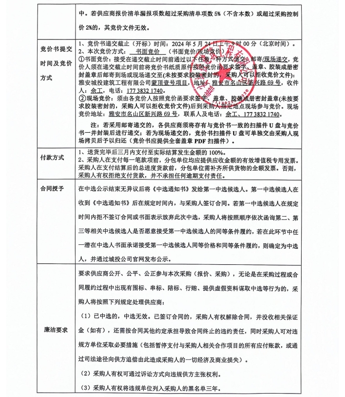 蒙頂壹號(hào)項(xiàng)目穿孔水泥板裝修材料采購競價(jià)公告