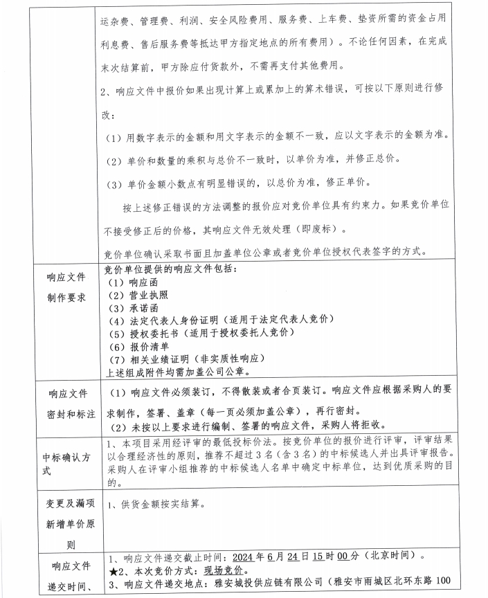 雅安城投供應鏈有限公司地鋪石采購競價公告