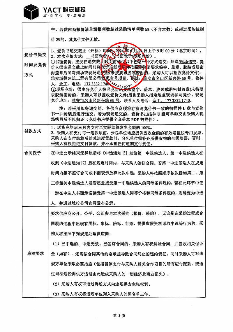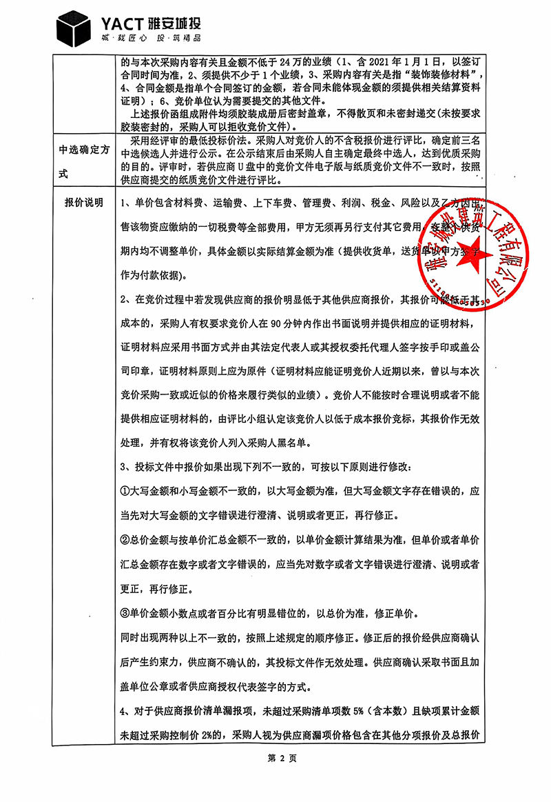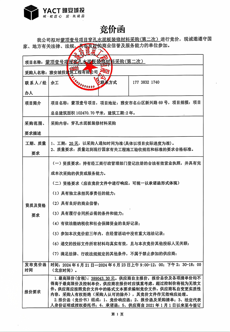 蒙頂壹號(hào)項(xiàng)目穿孔水泥板裝修材料采購(第二次)競(jìng)價(jià)函