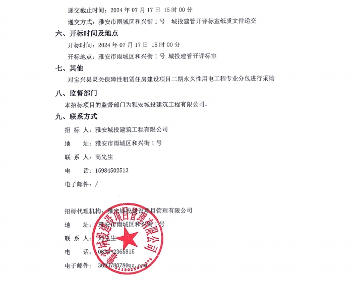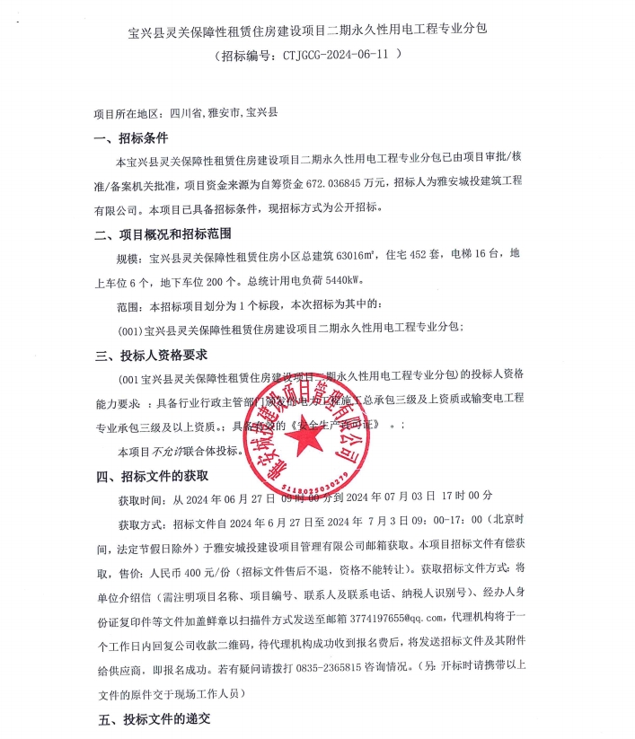 寶興縣靈關保障性租賃住房建設項目二期永久性用電工程專業(yè)分包公告
