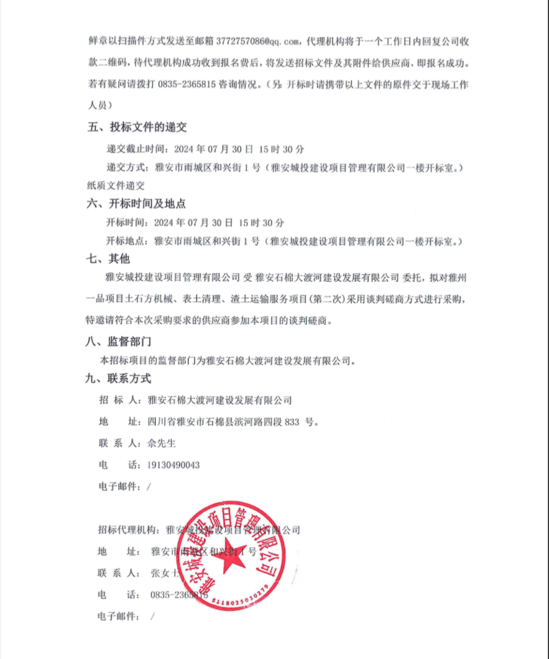 雅州一品項目土石方機械、表土清理、渣土運輸服務項目(第二次)公告