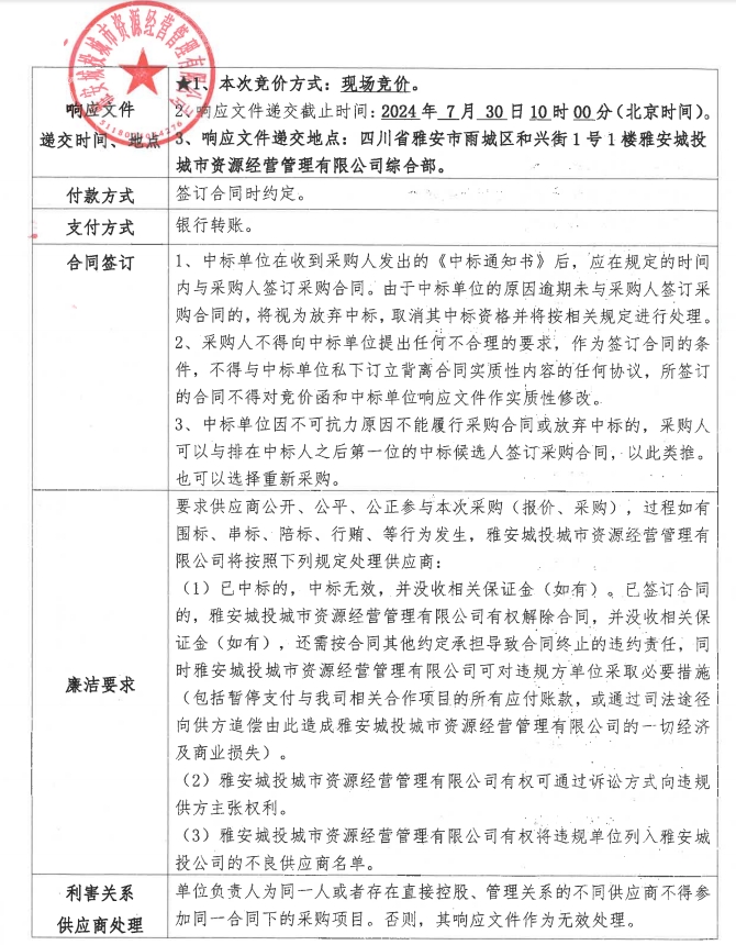 雅安城投城市資源經(jīng)營管理有限公司西康記憶生態(tài)文旅街區(qū)充電樁采購項(xiàng)目競價(jià)公告