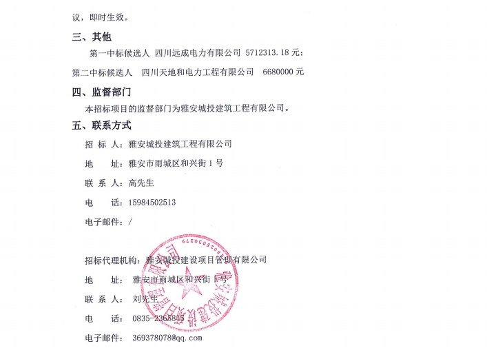 寶興縣靈關(guān)保障性租賃住房建設(shè)項目二期永久性用電工程專業(yè)分包中標候選人公示