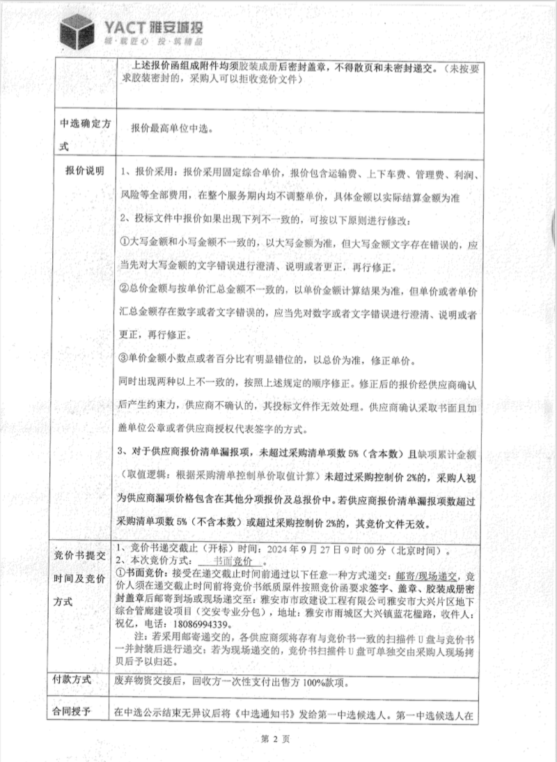 雅安市大興片區(qū)地下綜合管廊建設(shè)項(xiàng)目第二批廢棄鋼筋出售競(jìng)價(jià)公告